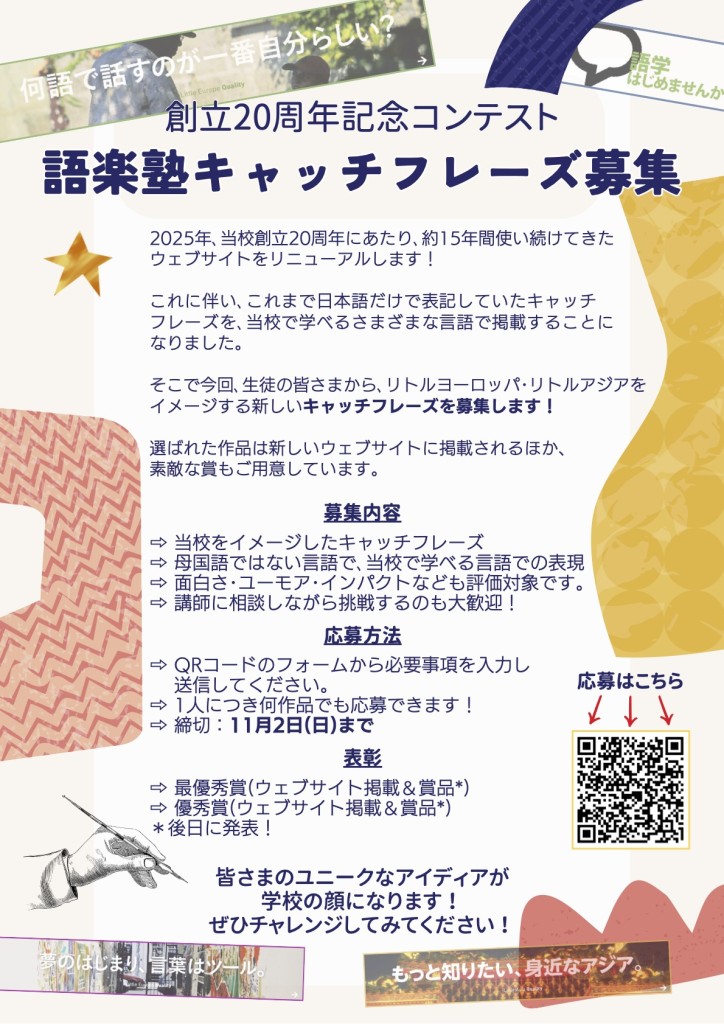 語楽塾リトルヨーロッパ・リトルアジアのホームページを見てお問い合わせいただくと、体験レッスン無料♪♪