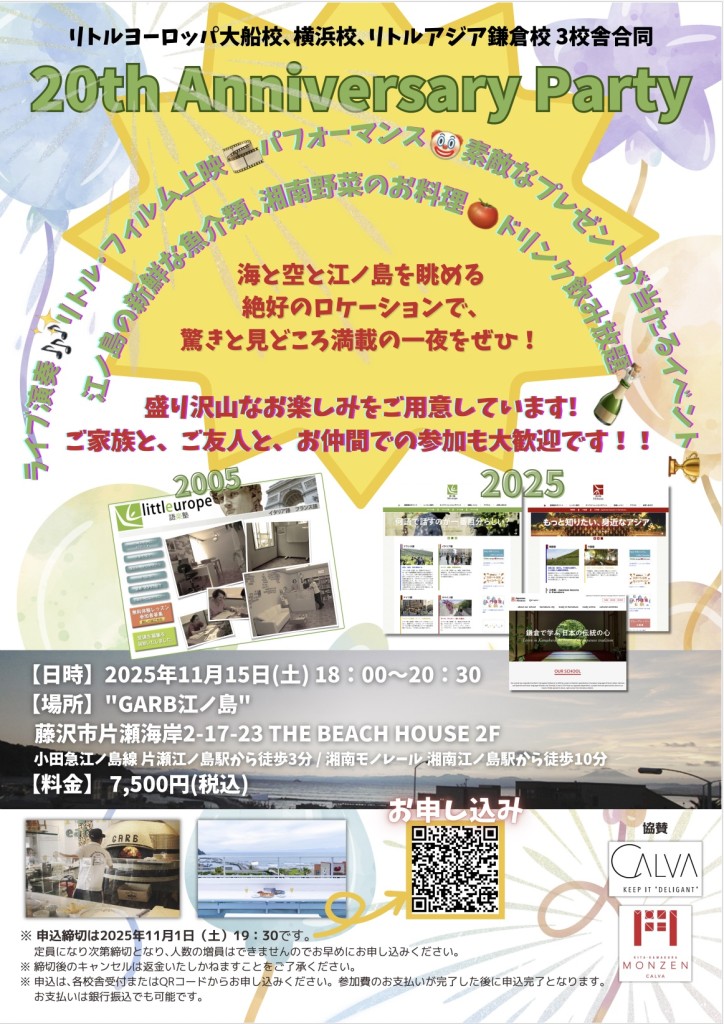 リトルヨーロッパは、おかげさまで今年6月に開校20周年を迎えることができました。